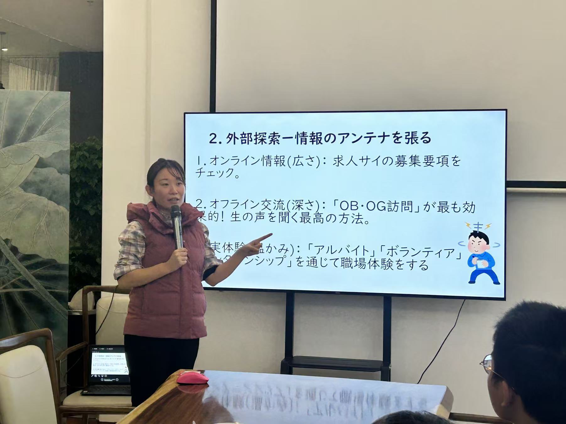 11月12日,十大网上博彩网址导航 日语系与日语俱乐部在图书馆二楼尚书吧共同举办本学期第一期日语角活动。本期主题为“未来职业大探险”,师生们齐聚一堂,围绕未来职业方向,畅想心目中的理想职业。