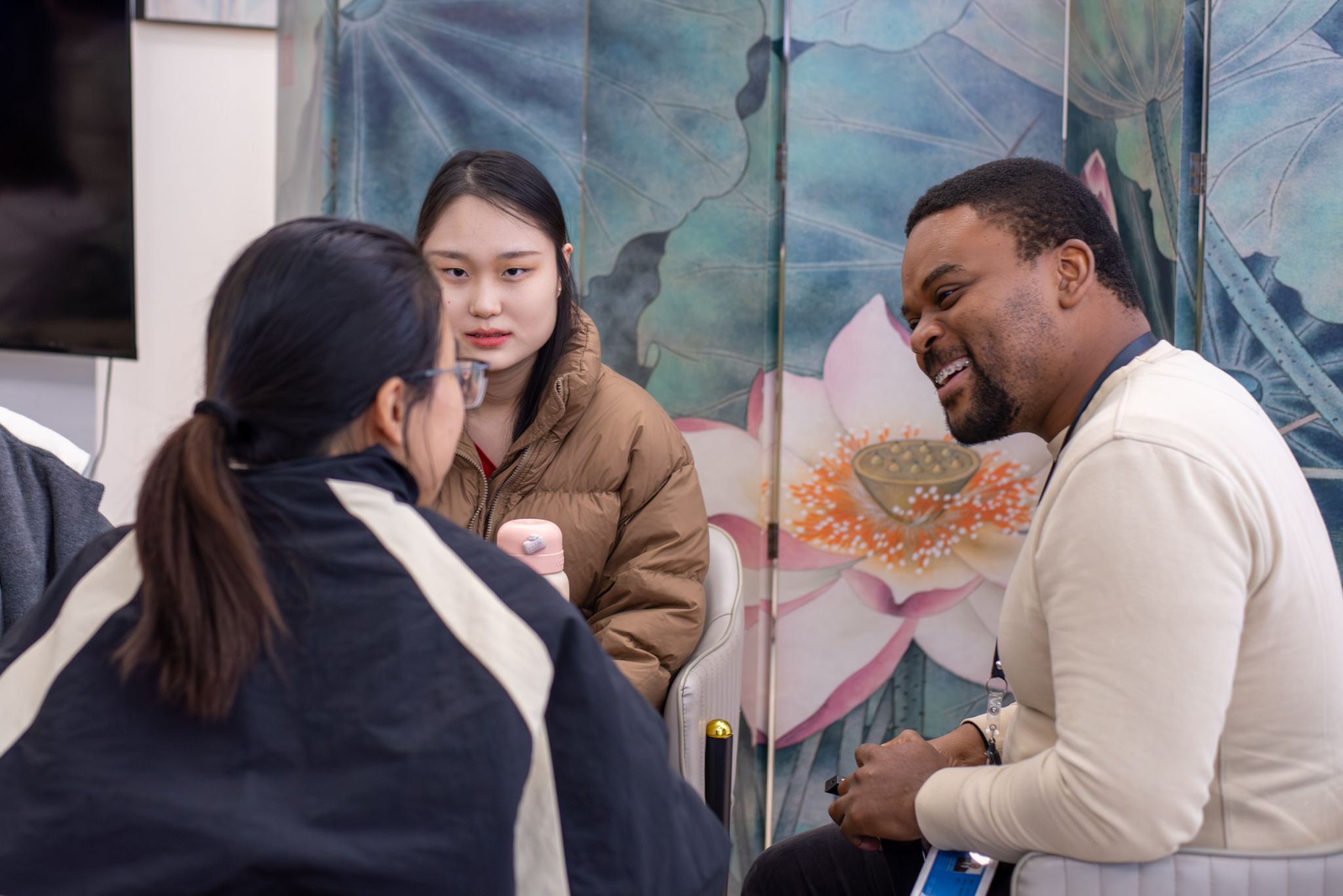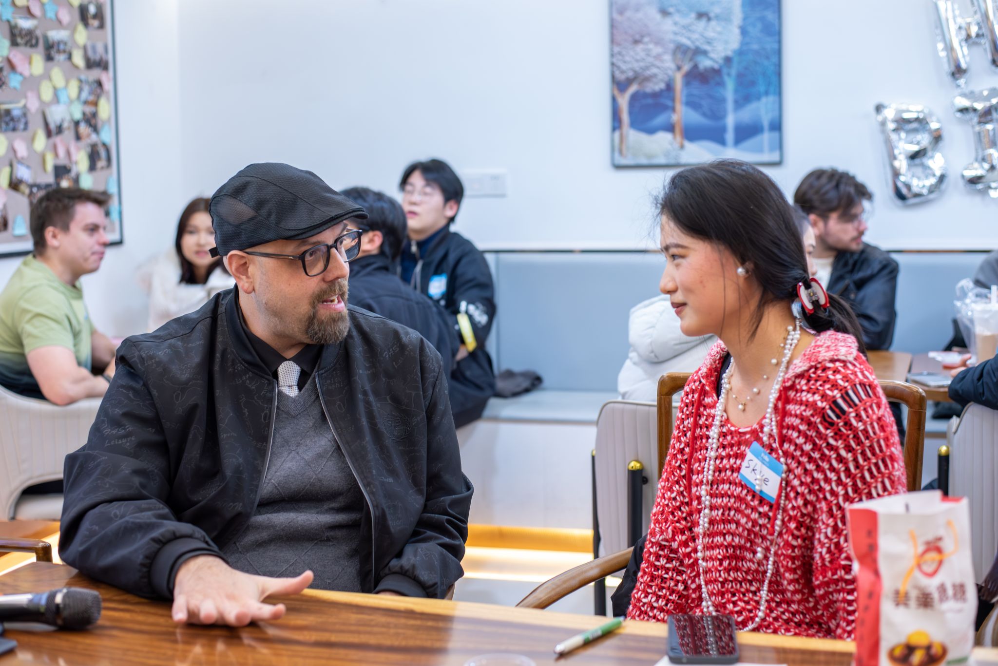 外教Nathan则以贴近生活的话题延续讨论热度。“在大学里交朋友难吗?”“哪些活动有助于增进友谊?”“如果每天多出一个小时,你会怎么利用?”三个问题迅速拉近与学子的距离。分享环节中,Nathan谈及自己的设想:或许会仰望星空、创办“午夜观星俱乐部”,或许会组建学习小组、创立“猫咖学习社”,又或是成立太极社团。在他的启发下,学子们围绕“若有机会,你想创建什么样的社团”展开畅想,纷纷提出“自由解放社”“麻将社”“没有数学的数学社团”等创意构想,并初步阐述社团规划,奇思妙想不断涌现。