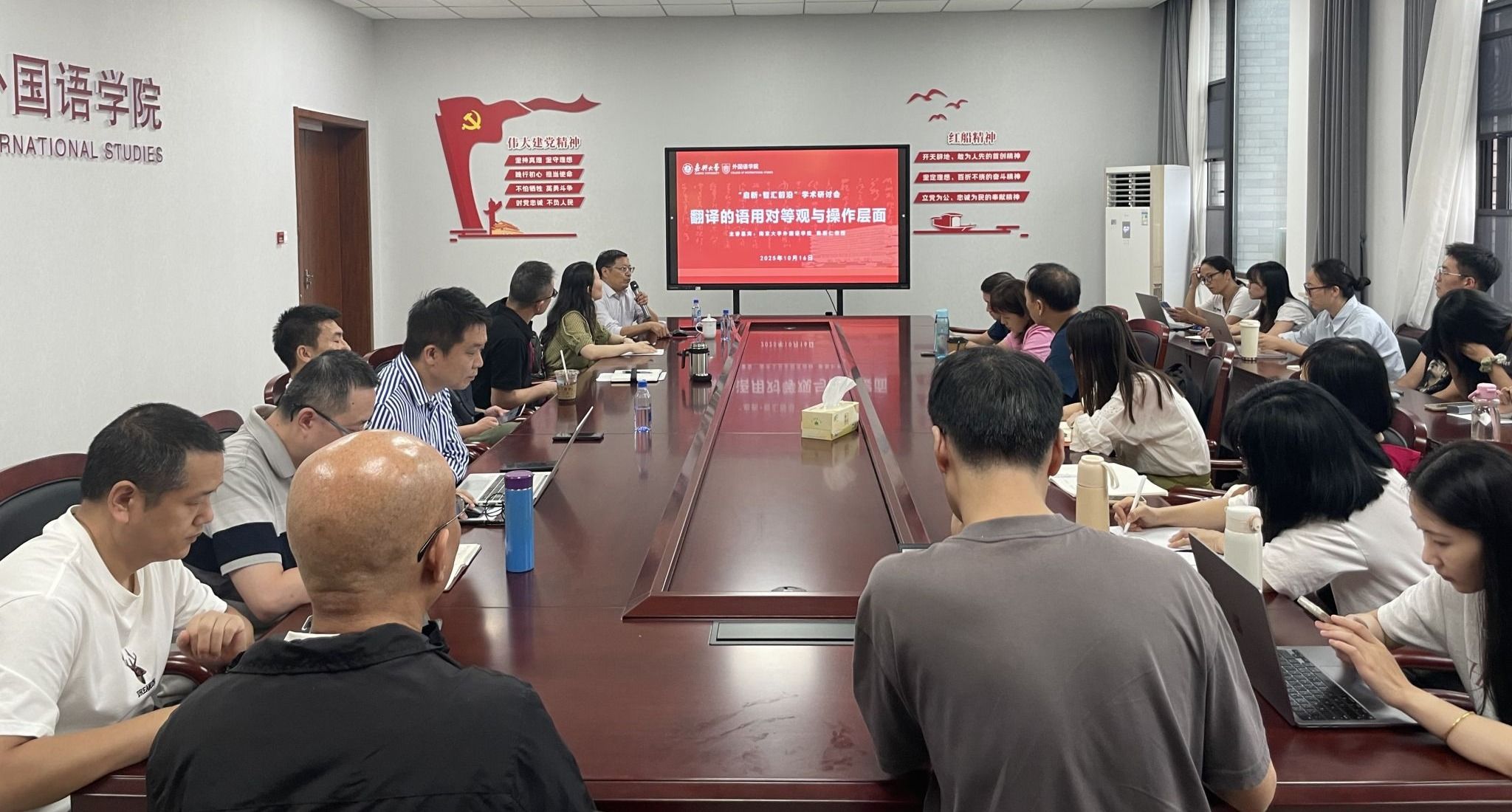 陈新仁教授从语用学视角出发,系统阐述了翻译语用对等观的核心内涵,即在追求形式、语义、风格对等的同时,更要确保实现源文本与目标文本在语用意义、语用功能和语用效果层面上的对等。他从施为用意、会话含意、语言礼貌、诗学效果等维度展开,结合丰富案例细致讲解了语用对等观在翻译实践中的实现方式。
