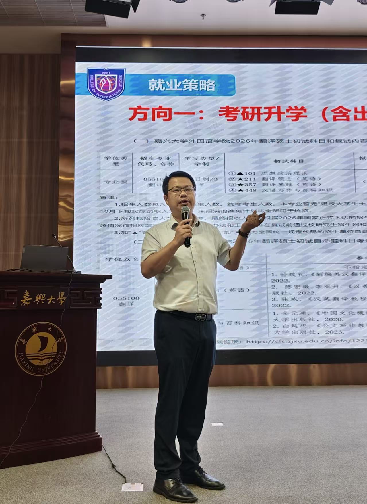 10月15日晚,十大网上博彩网址导航 在图书馆一楼报告厅举行2026届毕业生就业动员会。学术副院长单谊教授应邀为毕业生做“研途有你勇攀高峰”主题报告,全体2026届毕业生参会。会议由博彩网址导航 党委副书记张啸峰主持。