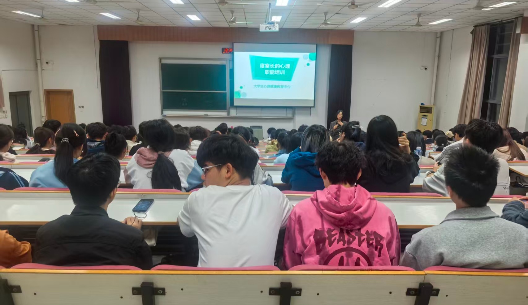 10月23日晚,十大网上博彩网址导航 联合医博彩网址导航 、建筑工程博彩网址导航 在悦礼楼报告厅举办寝室长的心理职能培训讲座,学校心理健康教育与资助主管姚春芬老师应邀主讲,全体大一新生寝室长参加培训。