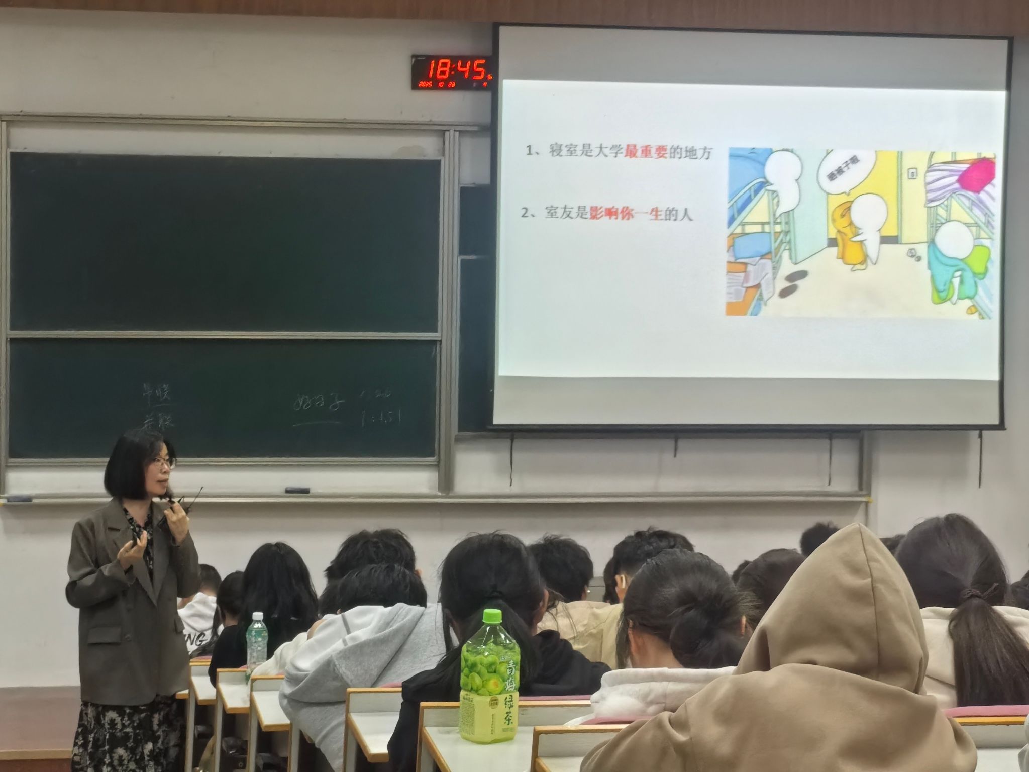 讲座上,姚春芬老师以亲切的互动方式,引导同学们分享担任寝室长的初衷,并指出寝室长不仅需要高度的责任心,更需投入充足的时间与耐心。她系统阐释了心理健康的基本概念,生动描绘了从心理健康到心理异常的发展过程,帮助寝室长们明确自身在校园心理健康工作中的重要职责,为后续工作打下坚实的认知基础。