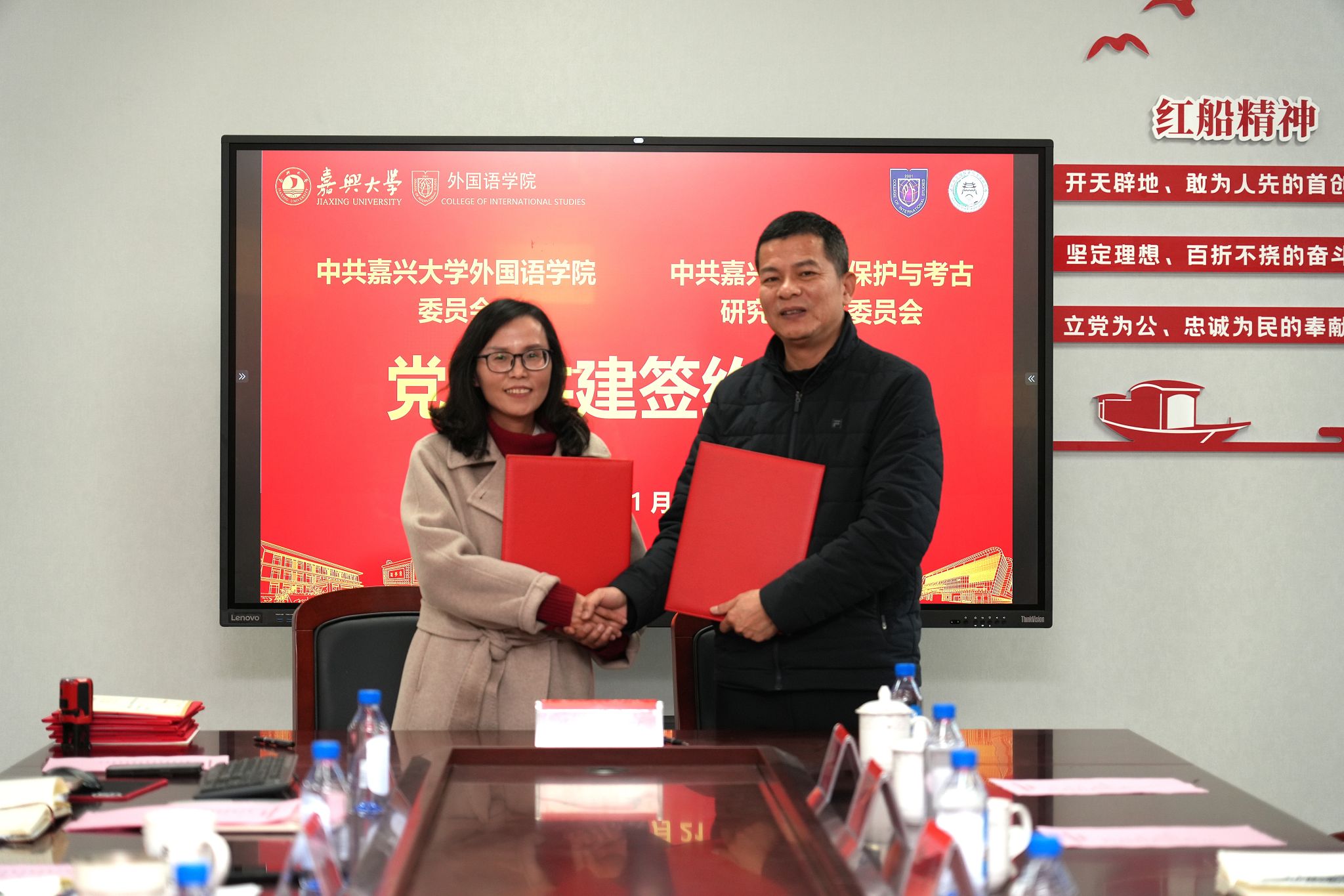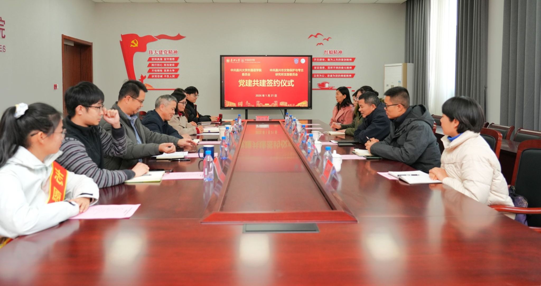 1月21日下午,十大网上博彩网址导航 党委与嘉兴市文物保护与考古研究所党支部在兴德楼南楼516会议室举行党建共建签约仪式。博彩网址导航 院长唐艳芳、党委书记刘巧芝,嘉兴市文物保护与考古研究所所长张青出席签约。仪式由博彩网址导航 党委副书记张啸峰主持,博彩网址导航 师生代表和相关人员参加仪式。