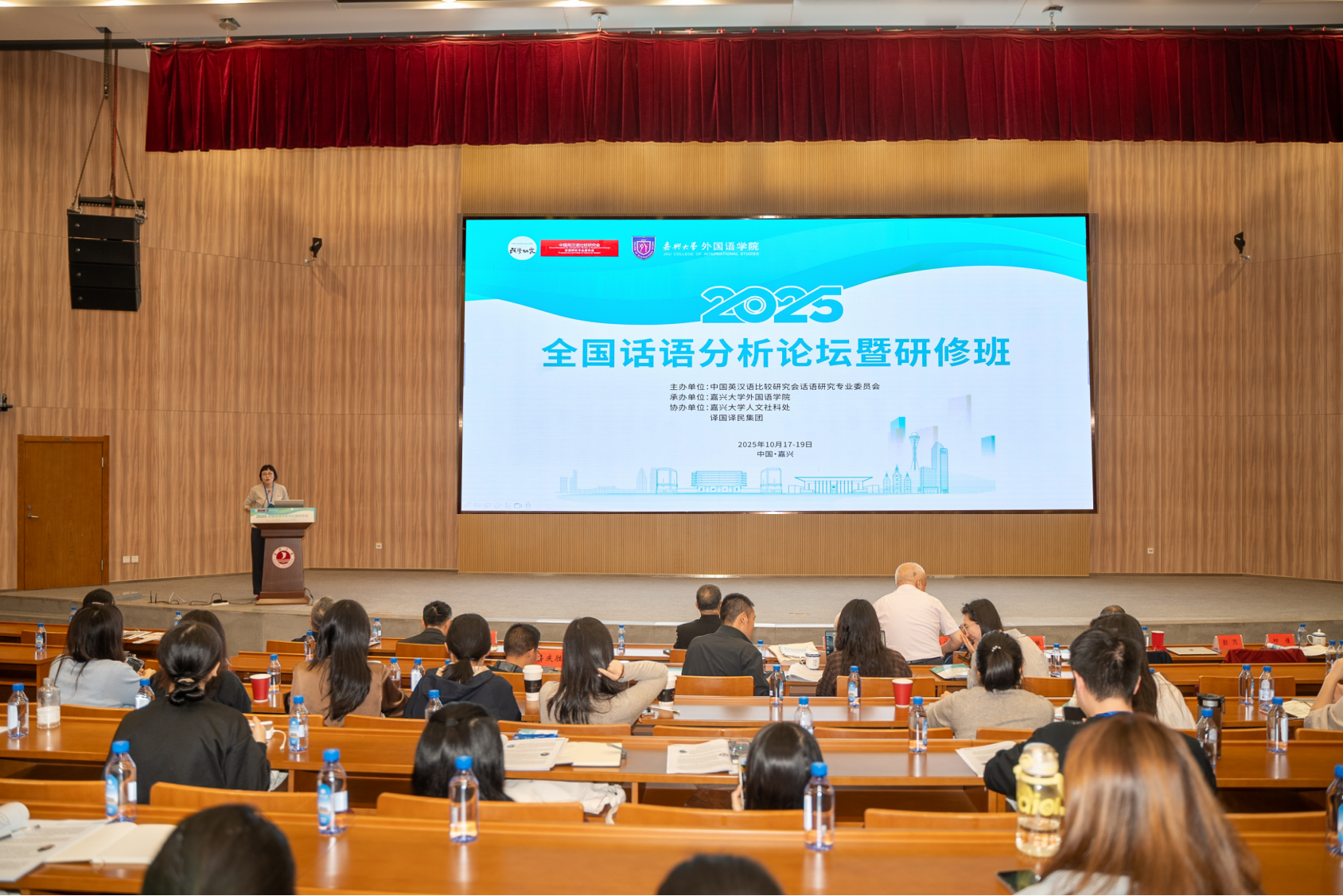 10月17—19日,2025年全国话语分析论坛暨研修班在嘉兴大学举办。论坛由中国英汉语比较研究会话语研究专业委员会主办、博彩网址导航-十大网上博彩网址导航 承办。嘉兴大学党委委员、副校长王立玮致欢迎辞,中国英汉语比较研究会话语研究专业委员会会长辛斌致开幕辞,博彩网址导航-十大网上博彩网址导航 院长唐艳芳主持开幕式。来自全国15个省市(自治区)以及马来西亚的近100名师生学者代表参加。