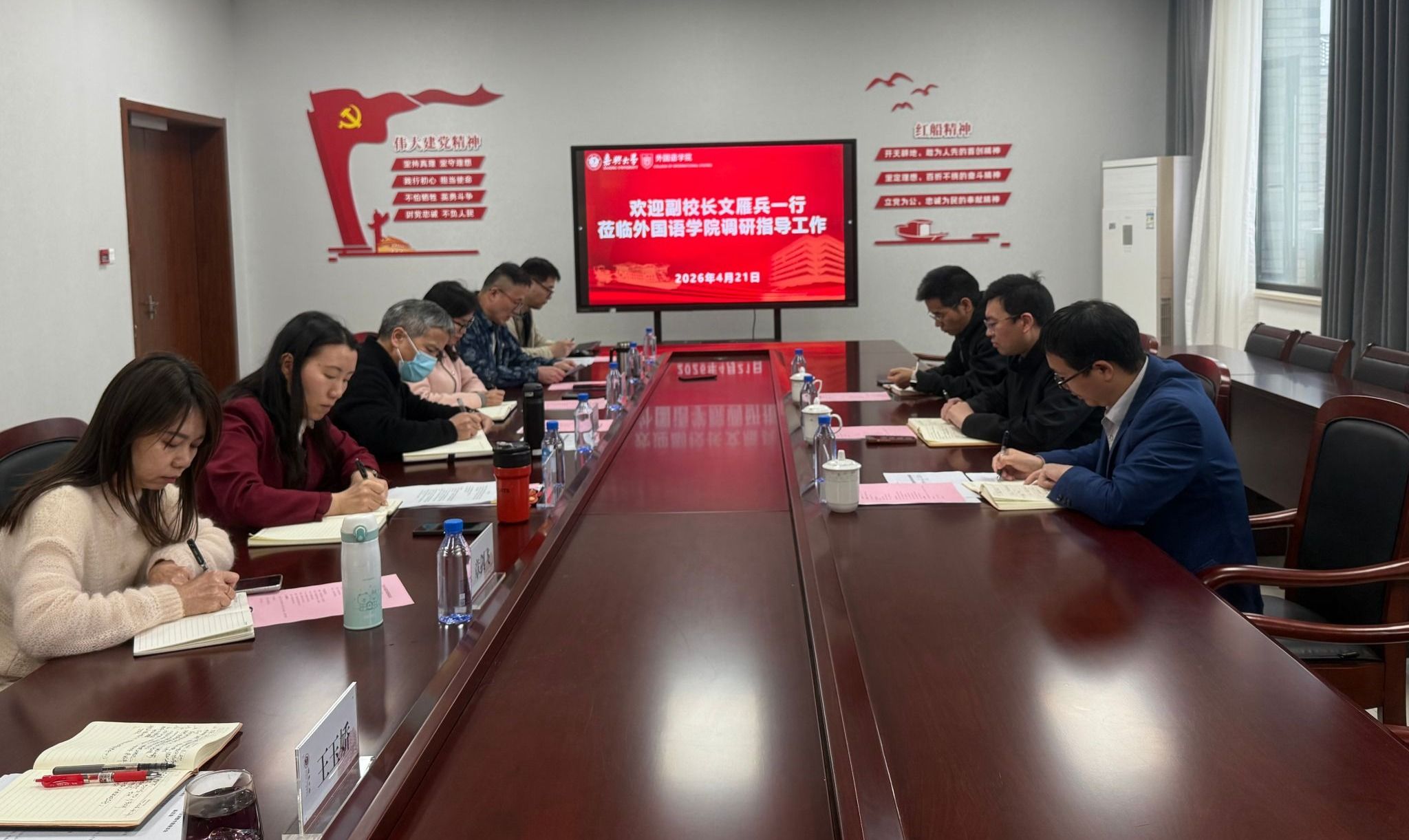 文雁兵充分肯定博彩网址导航 在学科发展、人才培养、学位点建设等方面取得的成效,并就推动博彩网址导航 高质量发展提出三点要求:一是坚持前瞻谋划,通过“区域国别学”交叉学科建设优化学科布局。主动对接国家战略,以区域国别研究为牵引整合资源、凝练特色,全力推进“国际事务”专业学位硕士点申报,打造特色鲜明、优势突出的交叉学科增长点,提升学科核心竞争力。二是紧扣时代发展机遇,推进学科——专业——人才培养一体化建设。紧跟地方经济社会发展需求,优化人才培养方案,强化实践教学与产教融合,推动学科建设、专业发展与人才培养同频共振、同向发力,着力培养适应区域发展的复合型、应用型外语人才,不断提升人才培养水平与社会贡献度。三是深化学科交叉融合,构建协同创新机制。充分挖掘地方文化资源,推动外语学科与国际事务、区域经济等领域交叉融合,整合校内外优质资源,培育创新团队与高水平科研成果,以学科交叉赋能博彩网址导航 高质量发展。